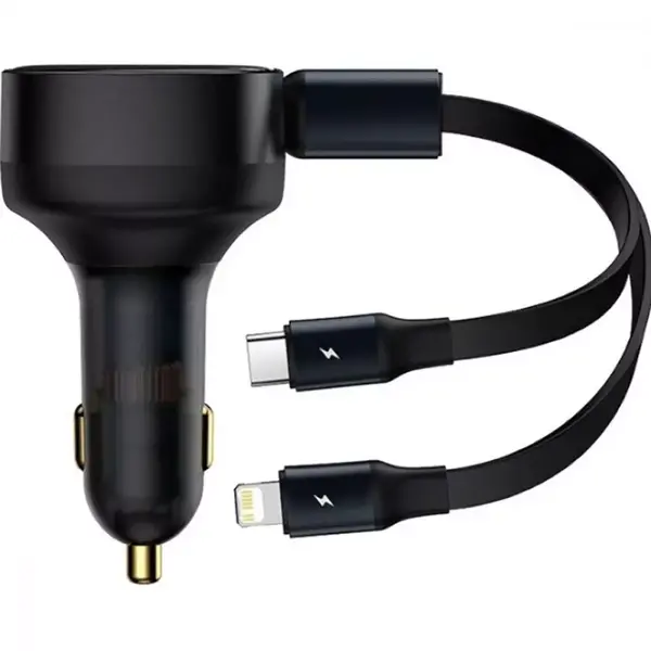 Baseus Enjoyment Retractable чудовий прилад для зарядки ваших приладів прямо в машині. Дозволяє заряджати одразу Android та Iphone не гублячи потужності. У пристрій встановлено систему захисту від перенапруги та перегріву, що додатково захищає телефон