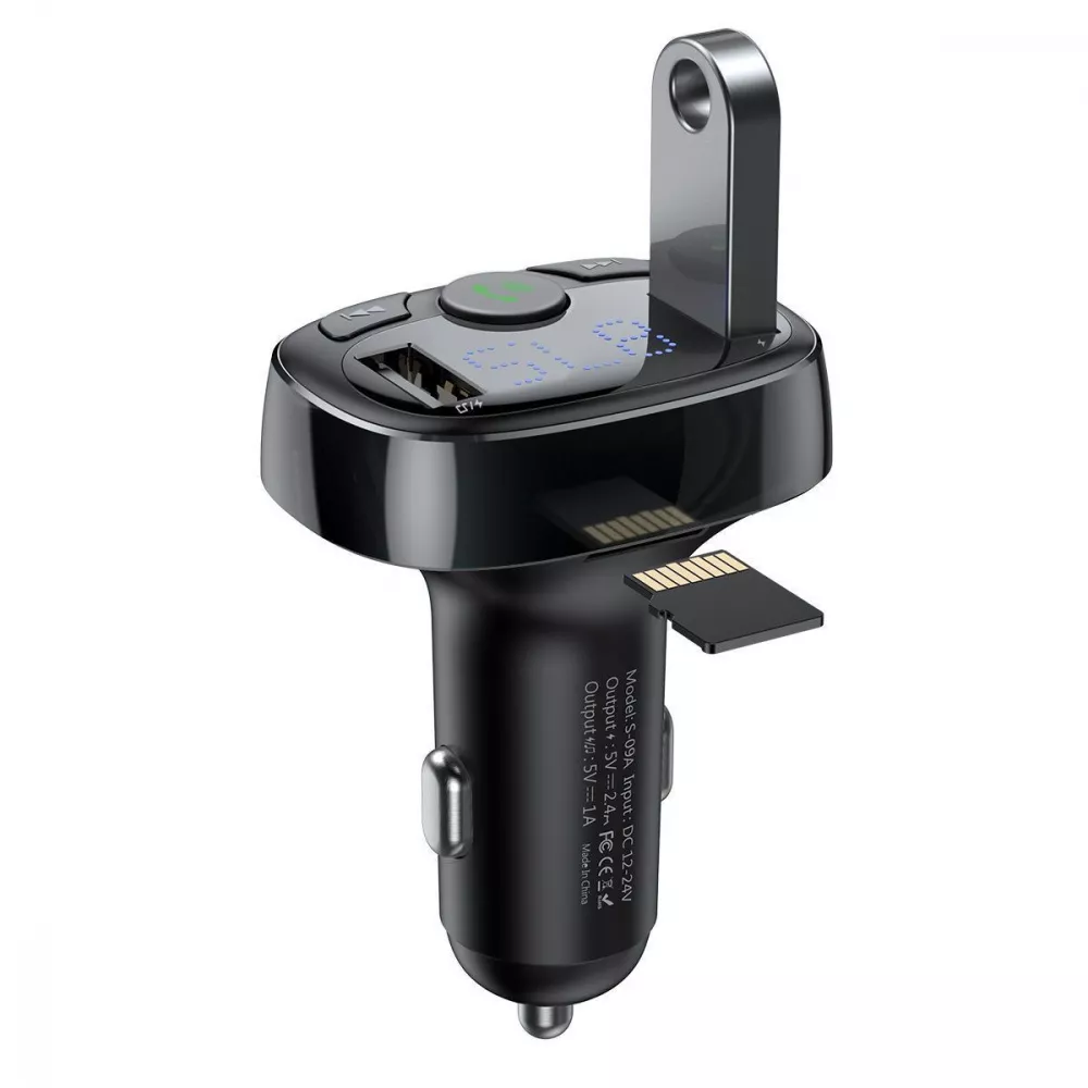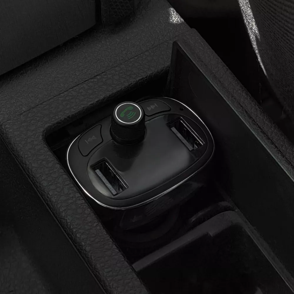 Пристрій оснащений FM-трансмітером, що дозволяє відтворювати музику через аудіосистему автомобіля. Для цього потрібно виставити на пристрої та аудіосистемі однакову частоту.