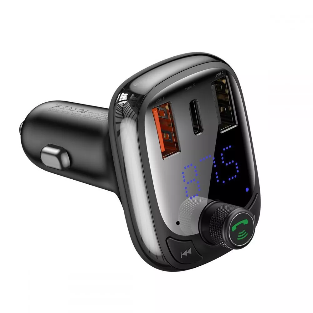 Пристрій оснащений FM-передавачем, який дозволяє відтворювати музику з вашого смартфона, USB-накопичувача або SD карти на аудіосистемі вашої машини. Оберіть вільну радіочастоту і встановіть таку ж на пристрої.