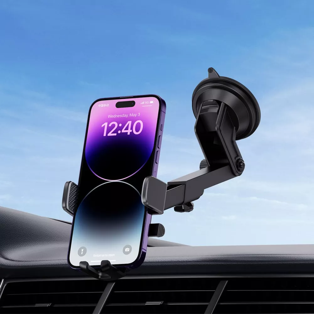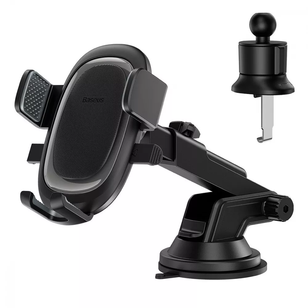 Baseus UltraControl Pro Series Clamp-Type фіксується на торпеду автомобіля, або на вентиляційну решітка, за допомогою спеціального вакуумного кріплення чи гачка.Телефон кріпиться трьома точками, що підтримають смартфон праворуч, ліворуч та знизу. Тож він не випадає з тримача та хорошо фіксується на місці