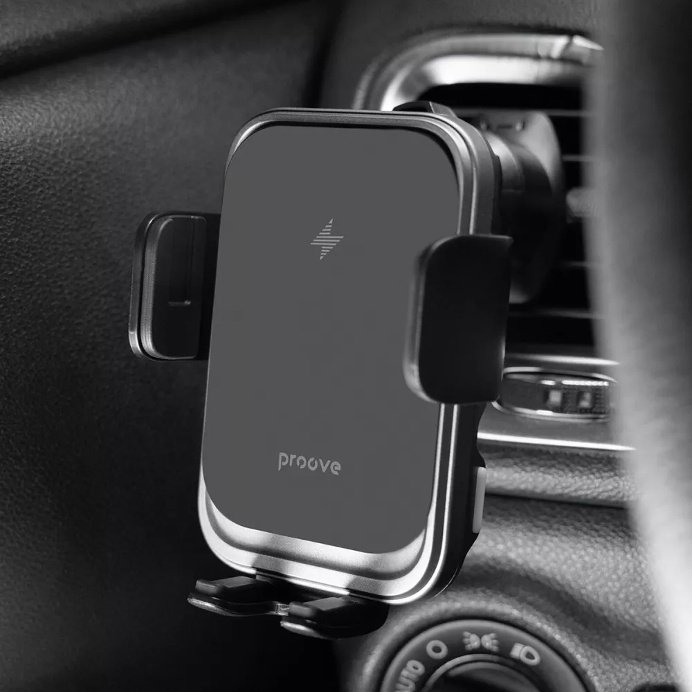 Автомобільний тримач з бездротовою зарядкою Proove Nitro Charge — ідеальне рішення для зарядки телефону та його одночасного використання під час подорожі.