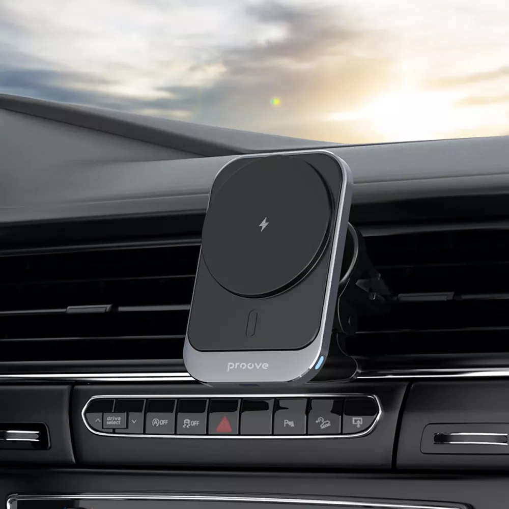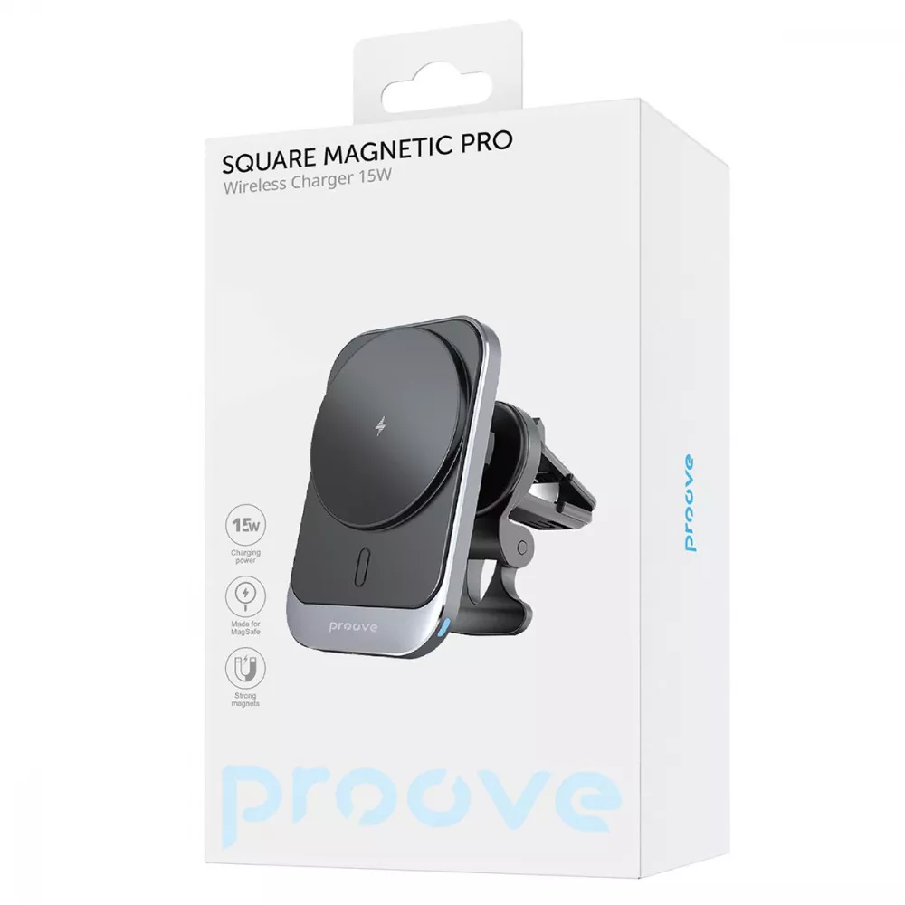 Proove Square Magnetic PRO — ваше ефективне рішення для заряджання телефону прямо в автомобілі. Завдяки вбудованій технології Magnetic Ring, що дозволяє надійно закріпити та швидко зарядити смартфон.