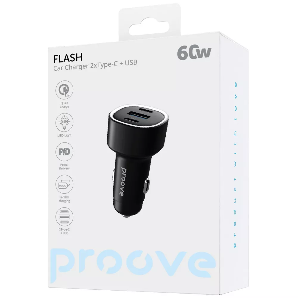 Proove Flash 60W – автомобільний зарядний пристрій для швидкої зарядки девайсів!