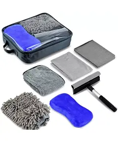 Основні характеристики: - 9 предметів у складі; - матеріал: мікрофібра + тканина; - підходить для домашнього та автомобільного прибирання; - підходить для скла та інших делікатних поверхонь; - добре вбирає вологу; - не залишає слідів на чистій поверхні. Універсальний набір Комплект підходить...