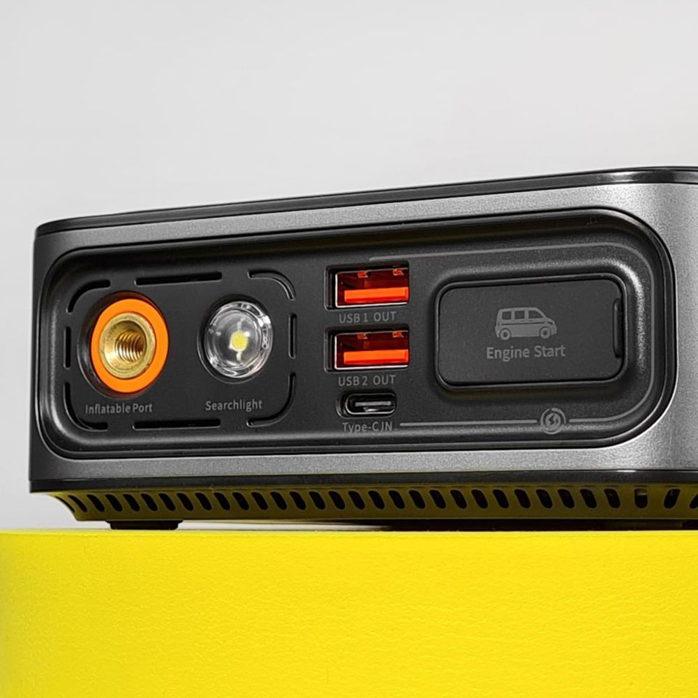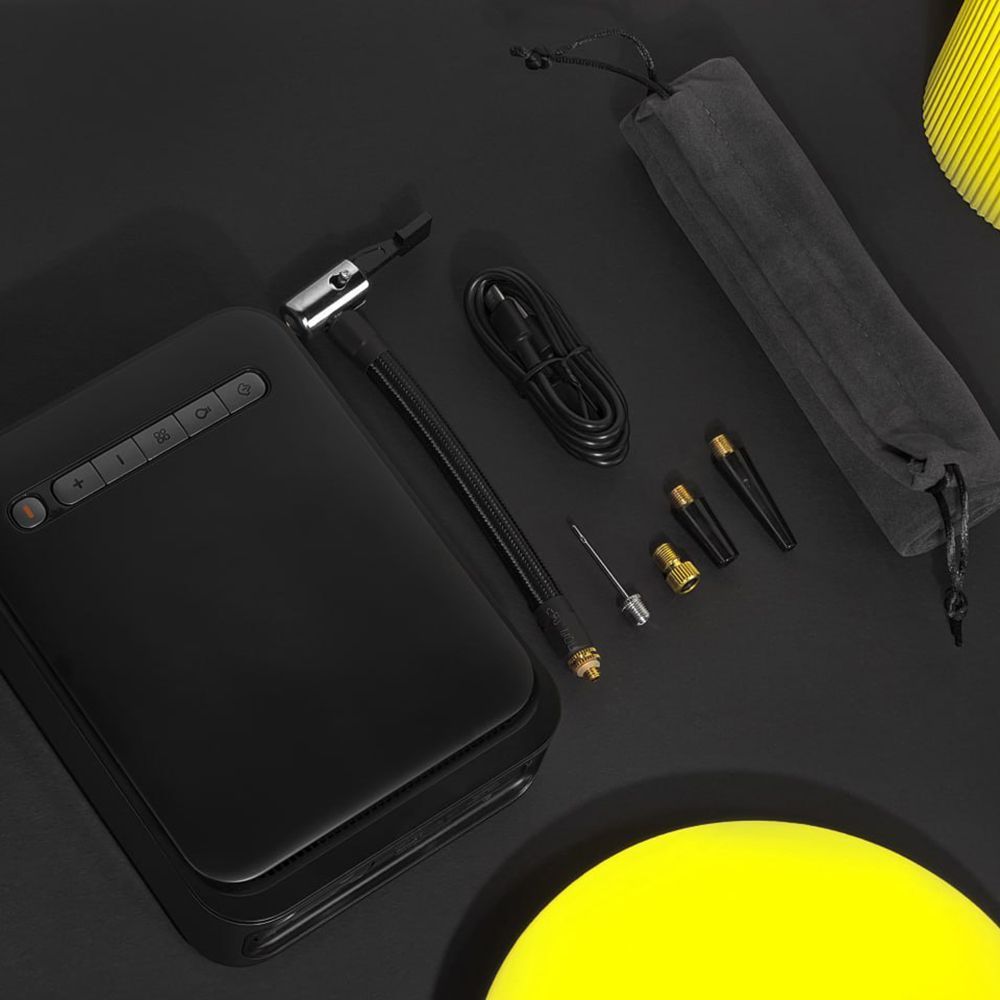 - комплектація: портативна батарея, чохол для зберігання, розумний стартерний затискач з електродами, зарядний кабель Type-C, шланг для накачування, 4 насадки для накачування.