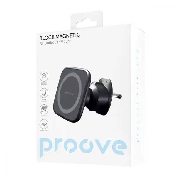 Proove Block Magnetic - магнітний автомобільний тримач для телефона забезпечує максимальну стійкість вашого смартфона під час поїздок. Його конструкція і просте кріплення дозволяють швидко та надійно встановити телефон, не турбуючись про його безпеку.