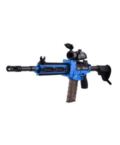 Основні характеристики: матеріал - ABS-пластик невеликий розмір заряджається кульками верхній резервуар для кульок в комплекті - автомат, набір кульок, USB кабель, акумулятор, резервуар для кульок. Міцний корпус з пластику та надійне кріплення резервуару для кульок дозволяє насолоджуватись грою...