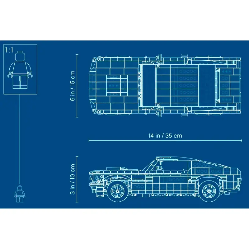 Набір включає також дві фігурки - чоловіка та жінку - які можна розмістити в салоні та позувати їм за кермом. Загалом, LEGO Creator Ford Mustang (10265) - це високоякісний набір конструктора з прекрасною деталізацією, який дозволяє створити реалістичну модель легендарного автомобіля.