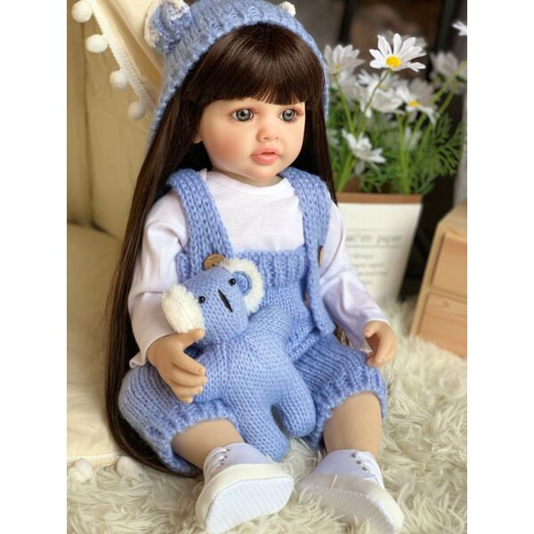 Лялька реборн - це велика лялька, висотою 55 см, виготовлена з високоякісного силікону. Лялька має реалістичне обличчя з виразними очима, віями та губами. Шкіра ляльки має природний рум'янець. Волосся ляльки довге і може бути розчесане й укладене за бажанням. Лялька одягнена вReborn