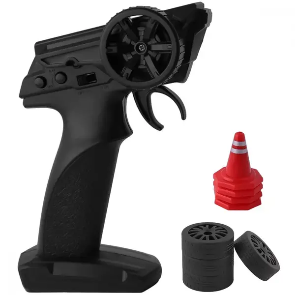 У комплект входить все необхідне для гри: машинка, пульт керування на частоті 2.4 ГГц, акумуляторна батарея,запасні колеса, конуси та USB-кабель для зарядки.