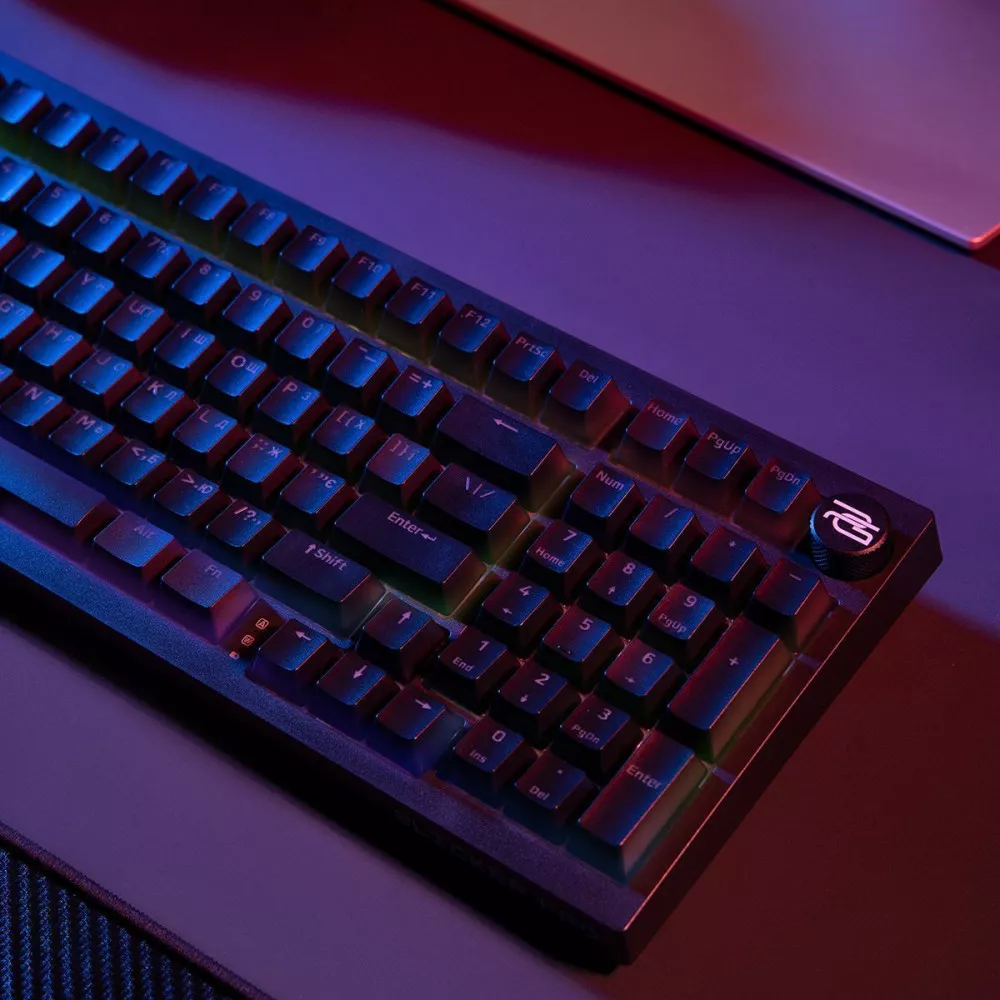 Клавіатура виконана в мінімалістичному стилі, що гармонійно поєднується з насиченим та рівномірним підсвічуванням. PBT-кейкапи забезпечують приємні тактильні відчуття, стійкість до зношування та збереження зовнішнього вигляду навіть після тривалого використання.