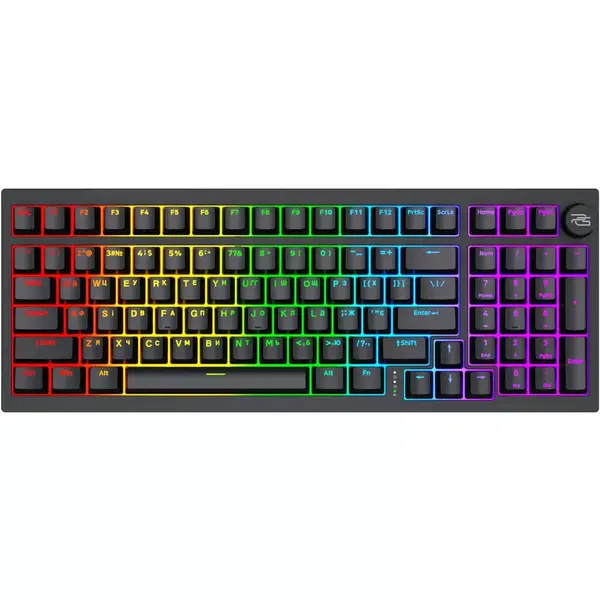 Клавіатура має розширений форм-фактор із блоком NUM-pad і додатковим елементом керування гучністю. Налаштування ефектів та підсвічування дозволяє адаптувати пристрій під власні потреби. Підтримка технології Hot-Swap дає можливість легко замінювати перемикачі Gateron G Pro 3.0 Yellow на будь-які сумісні без використання паяння, забезпечуючи максимальну гнучкість та персоналізацію.