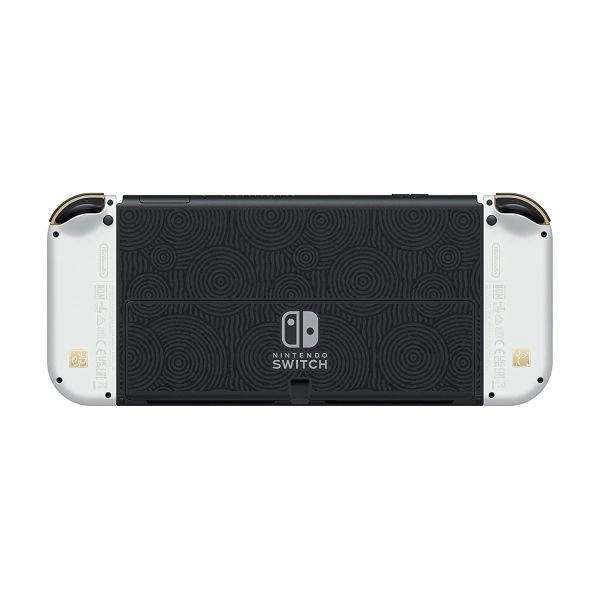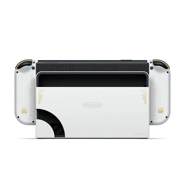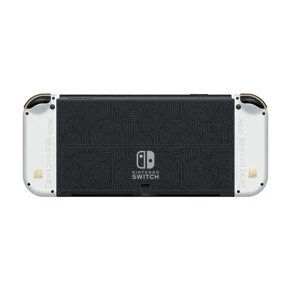 OLED Switch має відкидну підставку з того ж металу, що і задня частина системи, і майже такої самої ширини, як сам планшет. Підставка постійно кріпиться шарніром, що відкривається на будь-який кут до 150 градусів. Шарнір має достатньо натягу, щоб підставка твердо залишалася під цим кутом, якщо ви не рухаєте її фізично. Крім того, крихітні гумові ніжки в нижній частині пристрою, а також ширина підставки гарантують, що система не хитається або падати, коли ви кладете її на плоску поверхню.