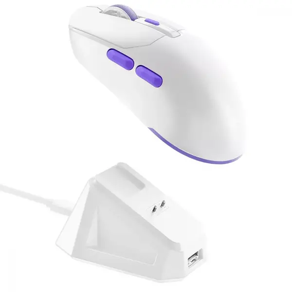 Мишку можна зарядити через Type-C або поставити на док-станцію – це просто і зручно. Станція має клейову основу для фіксації на столі та RGB-підсвітку для створення геймерської атмосфери.