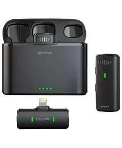 Proove Studio – Компактна, легка та потужна мікрофонна система, що забезпечує виняткову якість звуку. Основні характеристики: - Матеріал: ABS; - Тип мікрофона: цифровий; - Тип акумулятора: літій-полімерний; - Ємність акумулятора: Кейс: 1500мАг; RX/TX: 300мАг; - Вхід Type-C: DC 5V/2A; - Час...