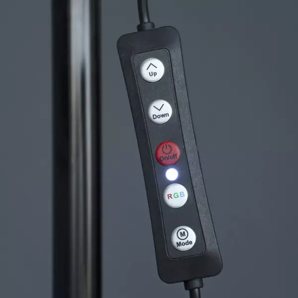 Пульт управління лампою знаходиться на кабелі. З його допомогою ви зможете включити або вимкнути лампу, змінити режим, регулювати інтенсивність світла, роблячи його яскравішим або тьмянішим.