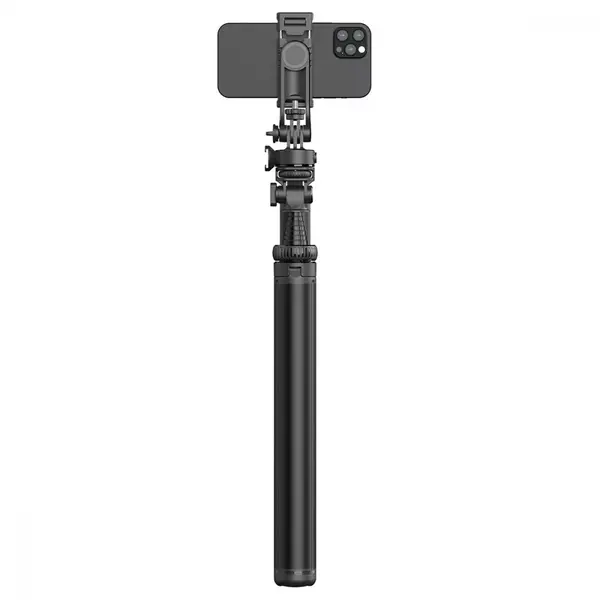 Штатив оснащений двома видами кріплення: для камери і для телефону, що робить його універсальним для будь-якого типу обладнання. Два додаткових кронштейни дозволяють кріпити світло і мікрофон, розширюючи можливості зйомки. Крім того, конструкція обертається на 360 градусів, забезпечуючи повний контроль над кутом.