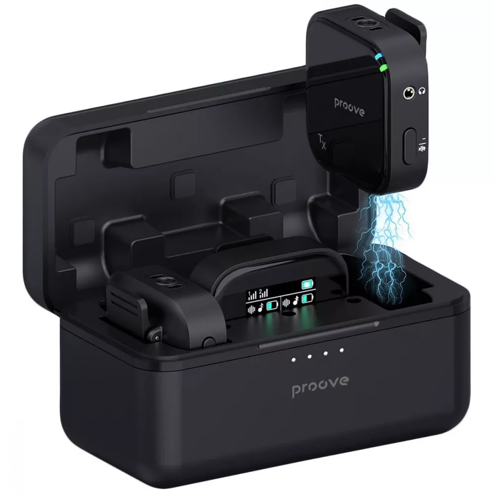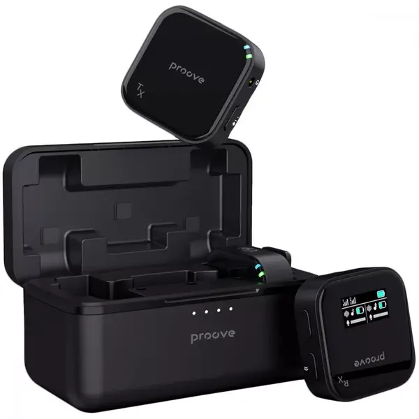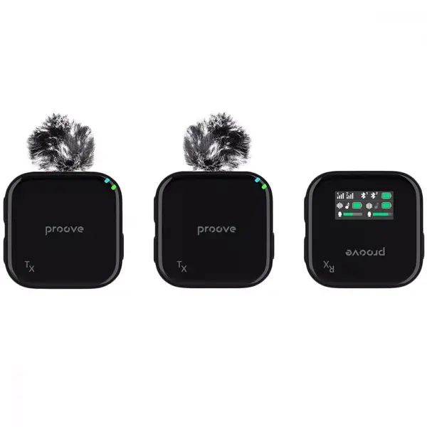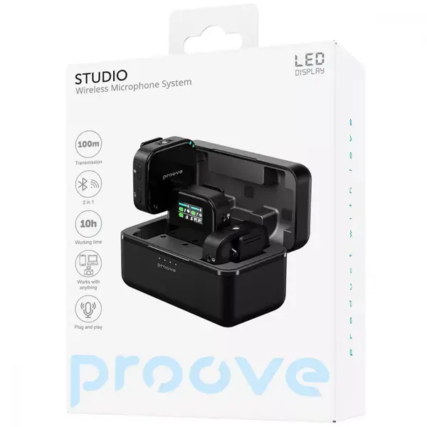 Proove Studio постачається з двома передавачами, кожен із яких оснащений вбудованими мікрофонами. Обидва передавачі підтримують всеспрямований звук, що робить їх ідеальними для інтерв’ю з кількома людьми або роботи в невеликих студіях. Якісний звук