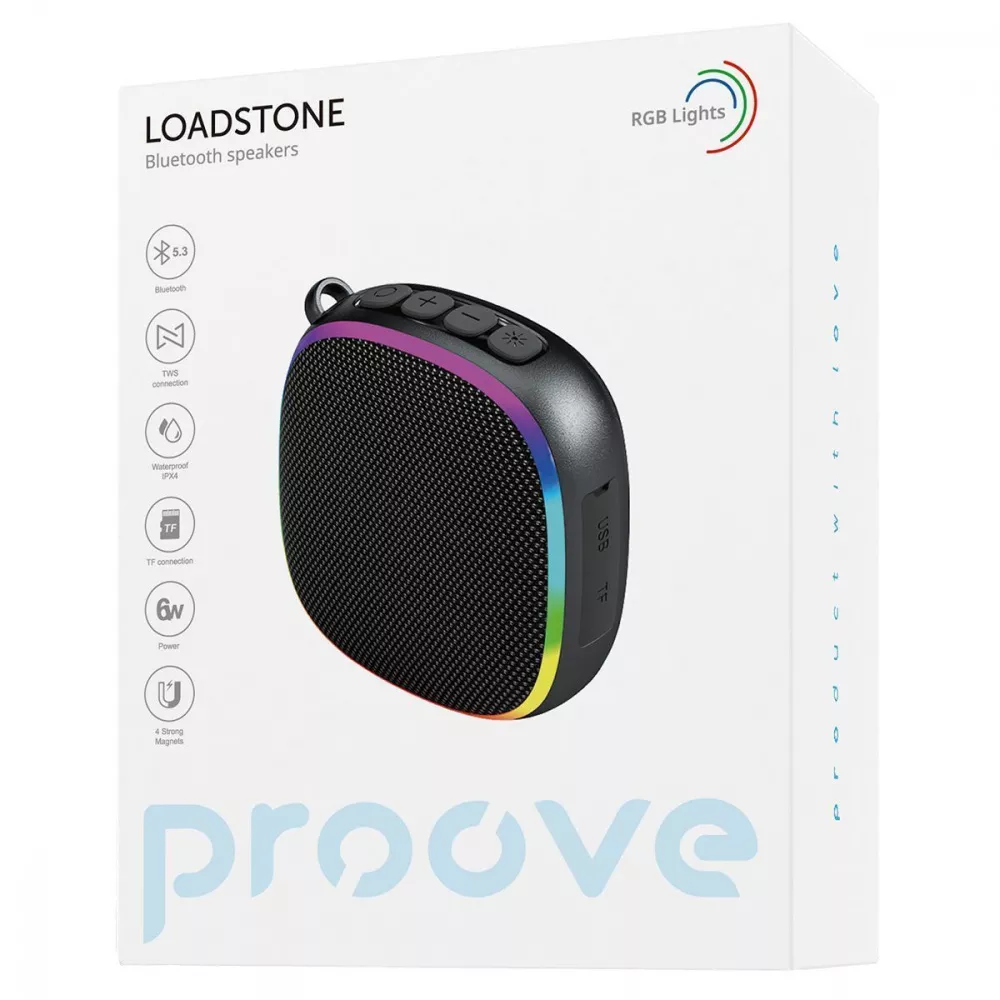 Proove Loadstone привертає увагу своїм сучасним дизайном. Виготовлена у квадратній формі вона легко вписуючись в інтер'єр. RGB-підсвітка надає динаміки та атмосфери. Компактний розмір дозволяє з легкістю брати її з собою, а кільце для ремінця забезпечує зручність перенесення.