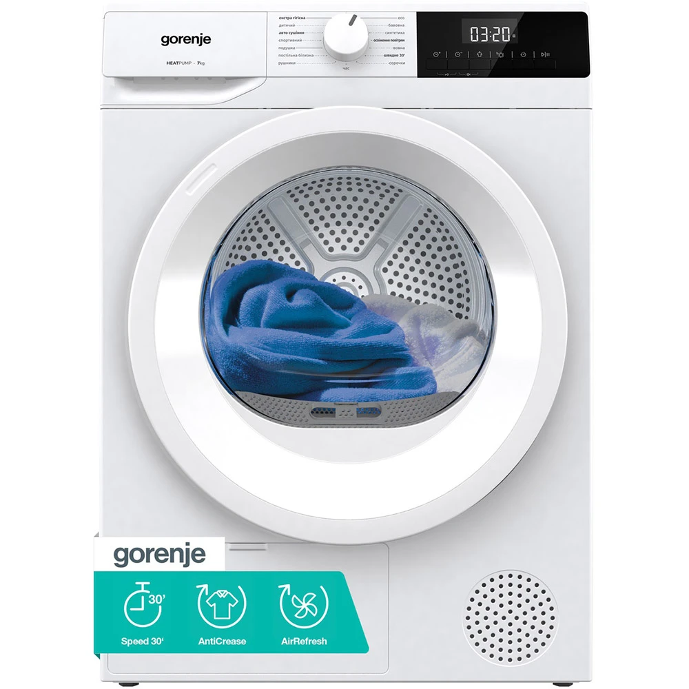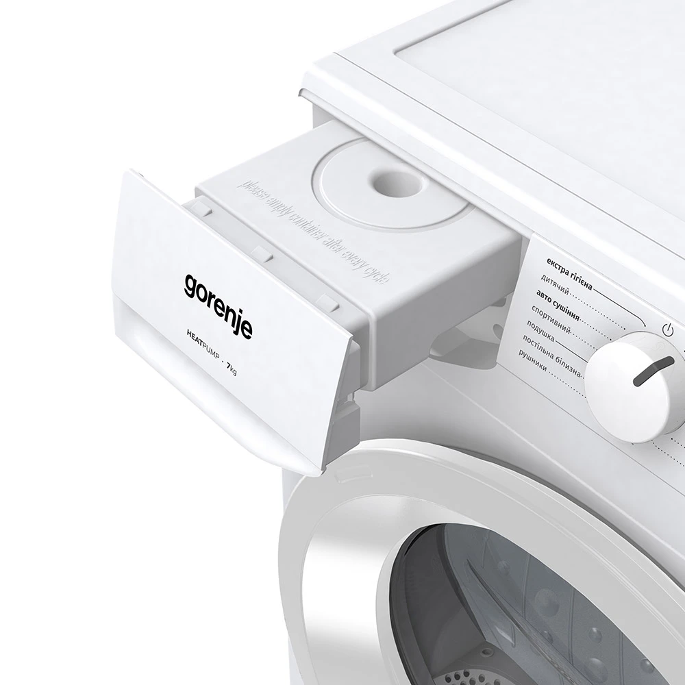 Gorenje D2HNE7E/UA — це сучасна сушильна машина з тепловим насосом, яка забезпечує ефективне та дбайливе сушіння одягу. Завдяки технології HeatPump пристрій працює при нижчих температурах, що зменшує споживання електроенергії та захищає тканини від пошкодження.