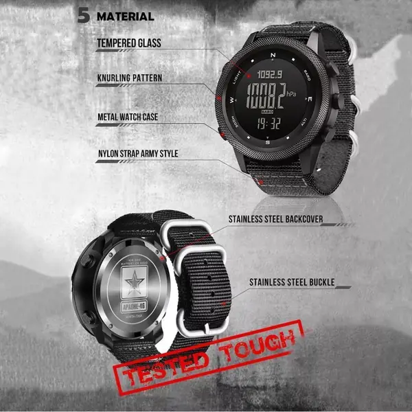 Годинник North Edge Apache 46 виготовлений із міцних, зносостійких матеріалів і може витримувати екстремальні температури.