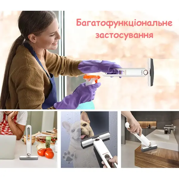 Також міні-швабра оснащена механізмом віджиму зайвої рідини, що забезпечить чистоту без зайвої вологи та розлучень.