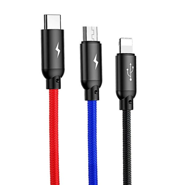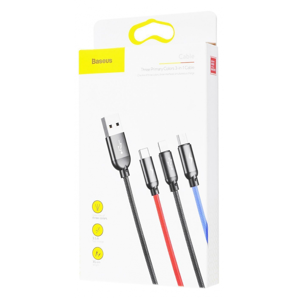Baseus Three Primary Colors 3-in-1 — кабель для заряджання та передачі даних з мультиінтерфейсом.