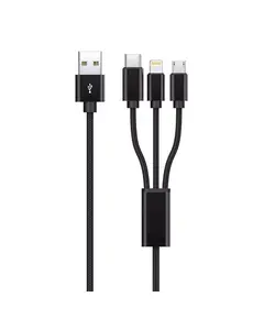 Основні характеристики: - Сила току: 3 А; - Довжина: 1.2 м; - Виготовлений з нейлону; - Підключення: USB на Type-C + MicroUSB + Lightning. Особливості товару Кабель виготовлений з якісного нейлона, що добре захищає кабель від розривів та потертостей. А чотири луджені мідні дроти додають...