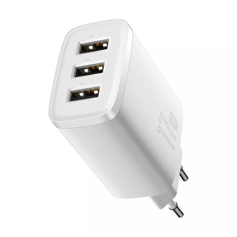 Baseus Compact 17W (3 USB) — мережевий зарядний пристрій для одночасного підключення 3 гаджетів.