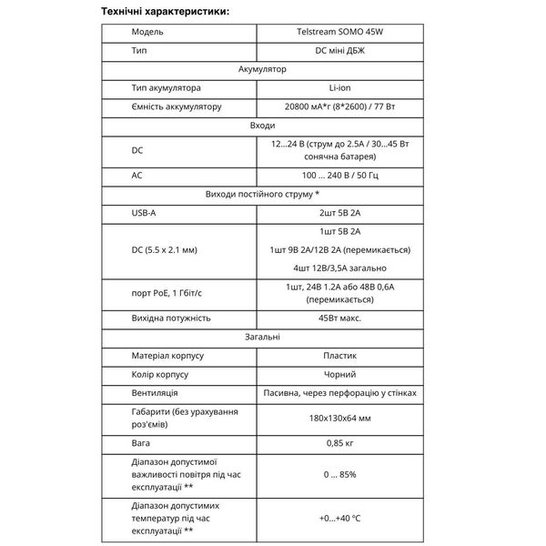 • Міні ДБЖ Telstream SOMO 45W