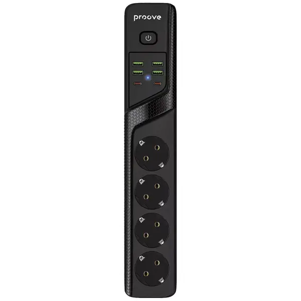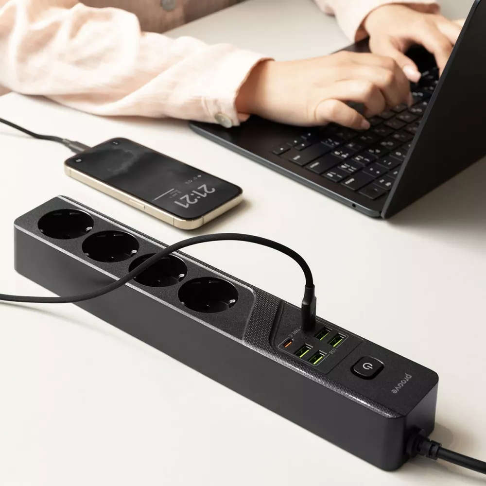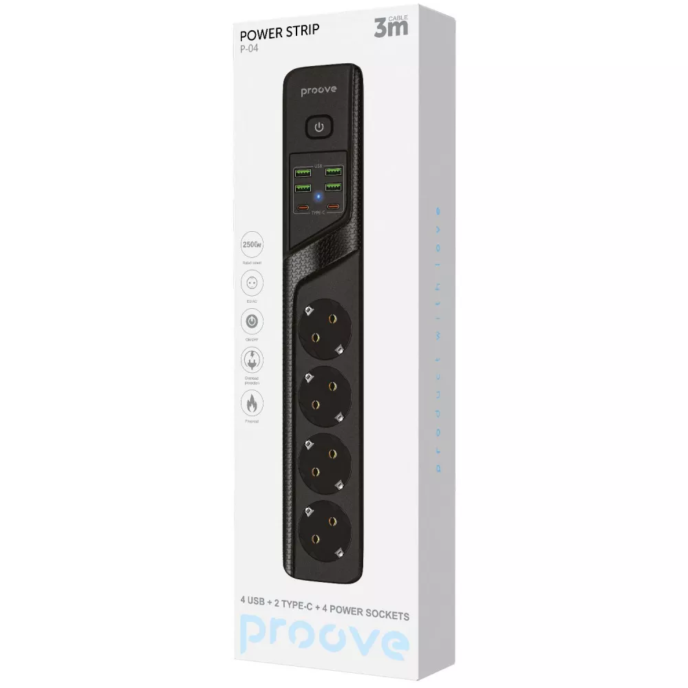 Модель Power Strip P-04 вирізняється лаконічним дизайном у сучасному стилі. Корпус виготовлений із вогнестійкого полікарбонату, що забезпечує додаткову надійність і безпечну експлуатацію. Усі порти розташовані зручно для щоденного користування. Кабель довжиною 3 метри дозволяє гнучко організувати простір у приміщенні.