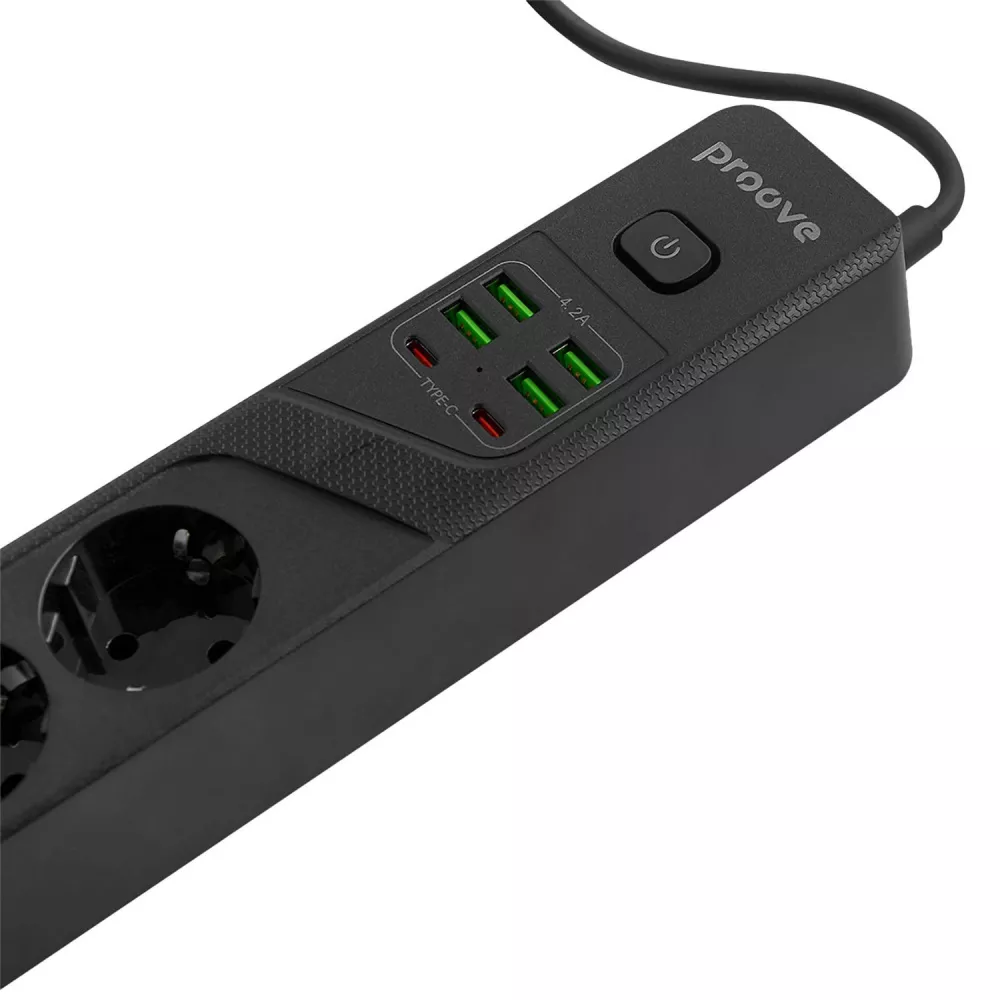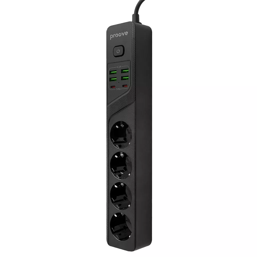 Мережевий фільтр має 4 стандартні розетки (EU), 4 USB-порти та 2 порти Type-C. Загальна сила струму на USB- та Type-C-виходах становить до 4.2А, що забезпечує ефективне заряджання кількох пристроїв одночасно.