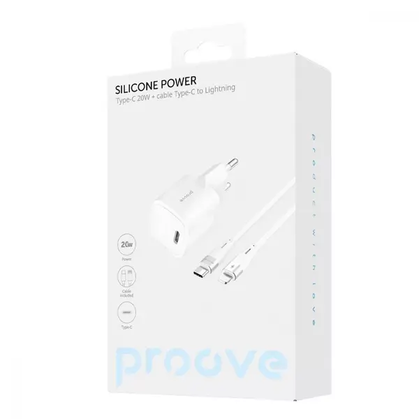 МЗП Proove Silicone Power 20W (Type-C) + Кабель Type-C to Lightning – безпечна і швидка зарядка!