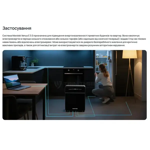 Marstek Venus E 3.0 — це не просто павербанк, це серце вашої енергосистеми. Завдяки ємності 5 кВт·год, станція здатна забезпечити критичні потреби середньостатистичної квартири протягом двох діб без підзарядки. Ідеально підходить для роботи з потужним кухонним обладнанням, насосними станціями та офісною інфраструктурою.