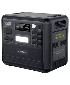 Основні характеристики: - Вага: 22 кг; - Led-ліхтар; - Led-дисплей; - Потужність: 2400W; - Металевий корпус; - Розмір: 392х279х323mm; - Вхід DC: 12-25V/8A до 100W; - Швидка зарядка: QC3.0, PD; - Порт: 2хUSB, 4хType-C, 2хDC, XT60, 3хАС. Choetech дасть змогу зарядити як телефон, так і автомобіль....