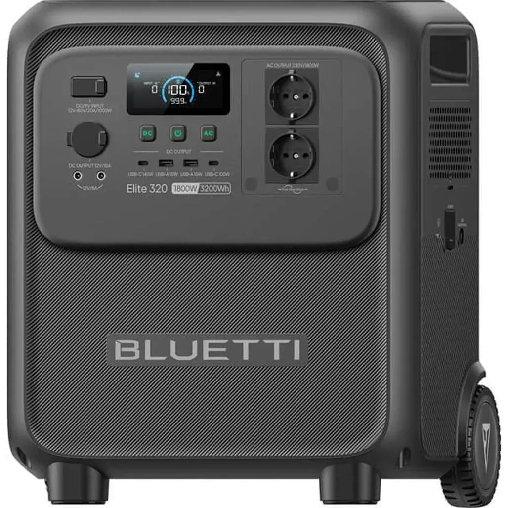 BLUETTI Elite 320 — потужна портативна зарядна станція для дому, офісу або дачі, яка забезпечує стабільне резервне живлення під час відключень електроенергії. Завдяки великій ємності 3200 Вт·год та потужності 3200 Вт, станція підходить для підключення побутової техніки, електроінструментів, освітлення, холодильника, котла, роутера та інших пристроїв.